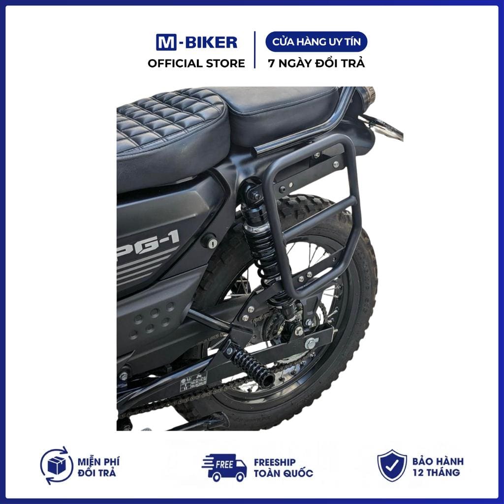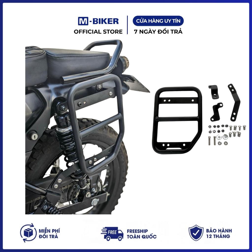 Đặc điểm nổi bật: Chất liệu thép dày , sơn tĩnh điện, bền bỉ – chịu tải nặng Thiết kế vừa khung xe – gắn không chế cháo Chạy tour, chở đồ, gắn thùng thoải mái Tăng tính thẩm mỹ & độ ngầu cho xe Dễ tháo lắp – hỗ trợ khách tự lắp tại nhà