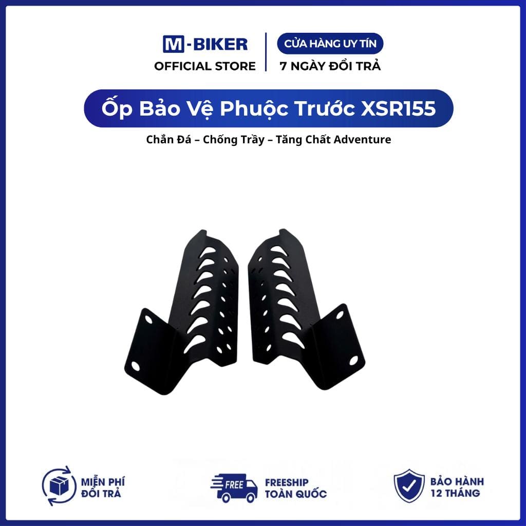 Ốp bảo vệ phuộc trước M-Biker dành riêng cho Yamaha XSR155 , thiết kế mạnh mẽ – cá tính, vừa giúp bảo vệ phuộc không bị đá văng – cát bụi – va quẹt , vừa tăng thẩm mỹ phong cách Adventure/Tracker.